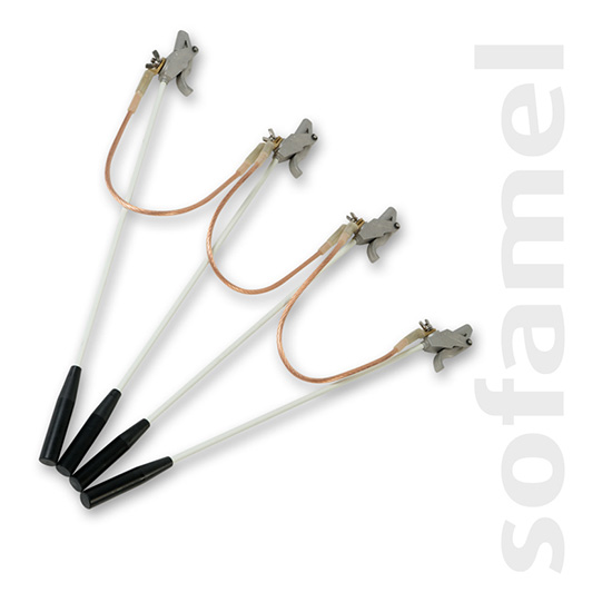 - 4 đầu kẹp nối với ống dài 0,7m có phần tay cầm bọc cao su cách điện.
